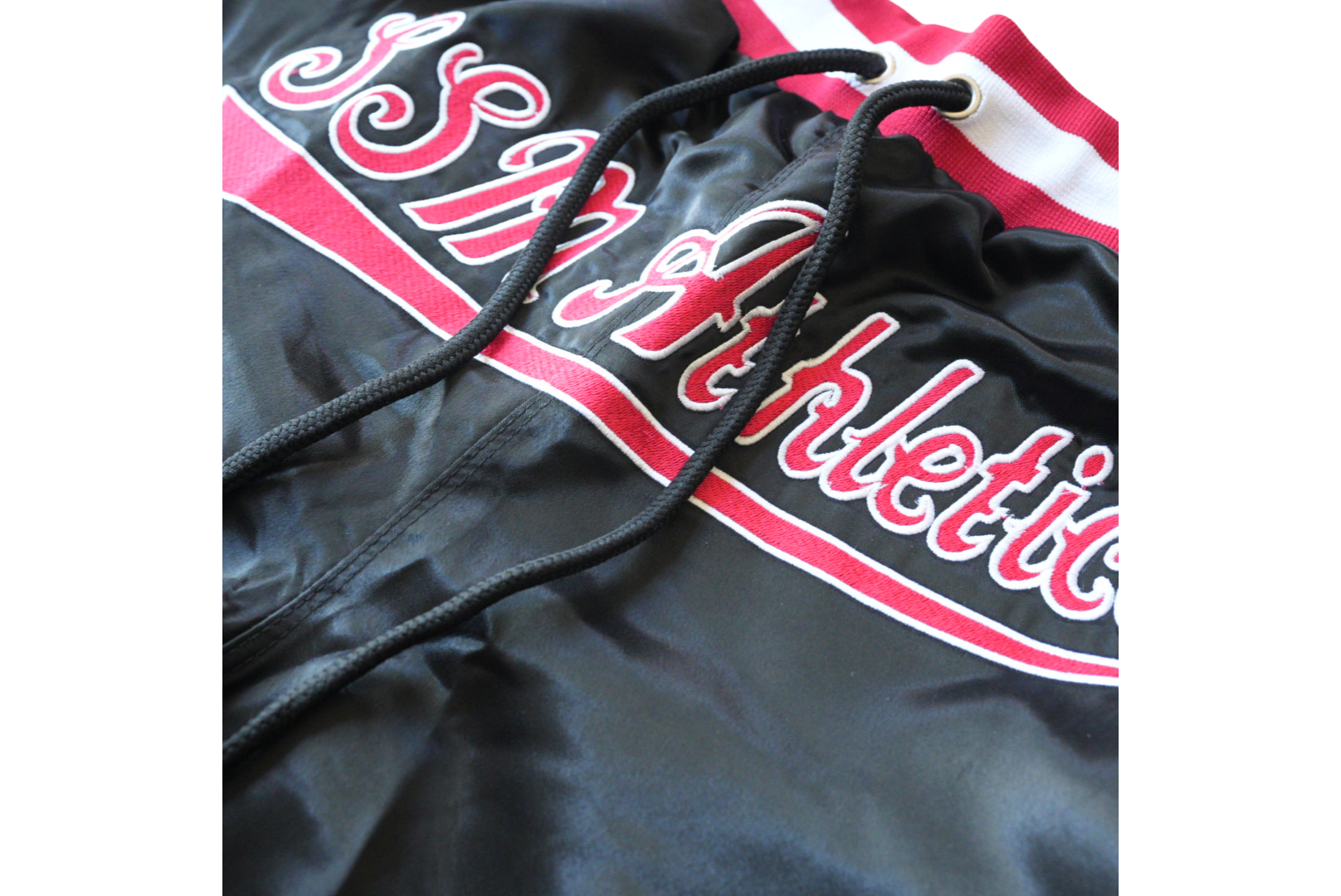 Our Satin SSM Athletics Varsity Shorts are made with sleek satin fabric and are tailored to fit for maximum comfort and style. They feature a drawstring, two side pockets, and a tapered fit to flatter. Enjoy effortless movement and stylish looks with our Varsity Shorts.
