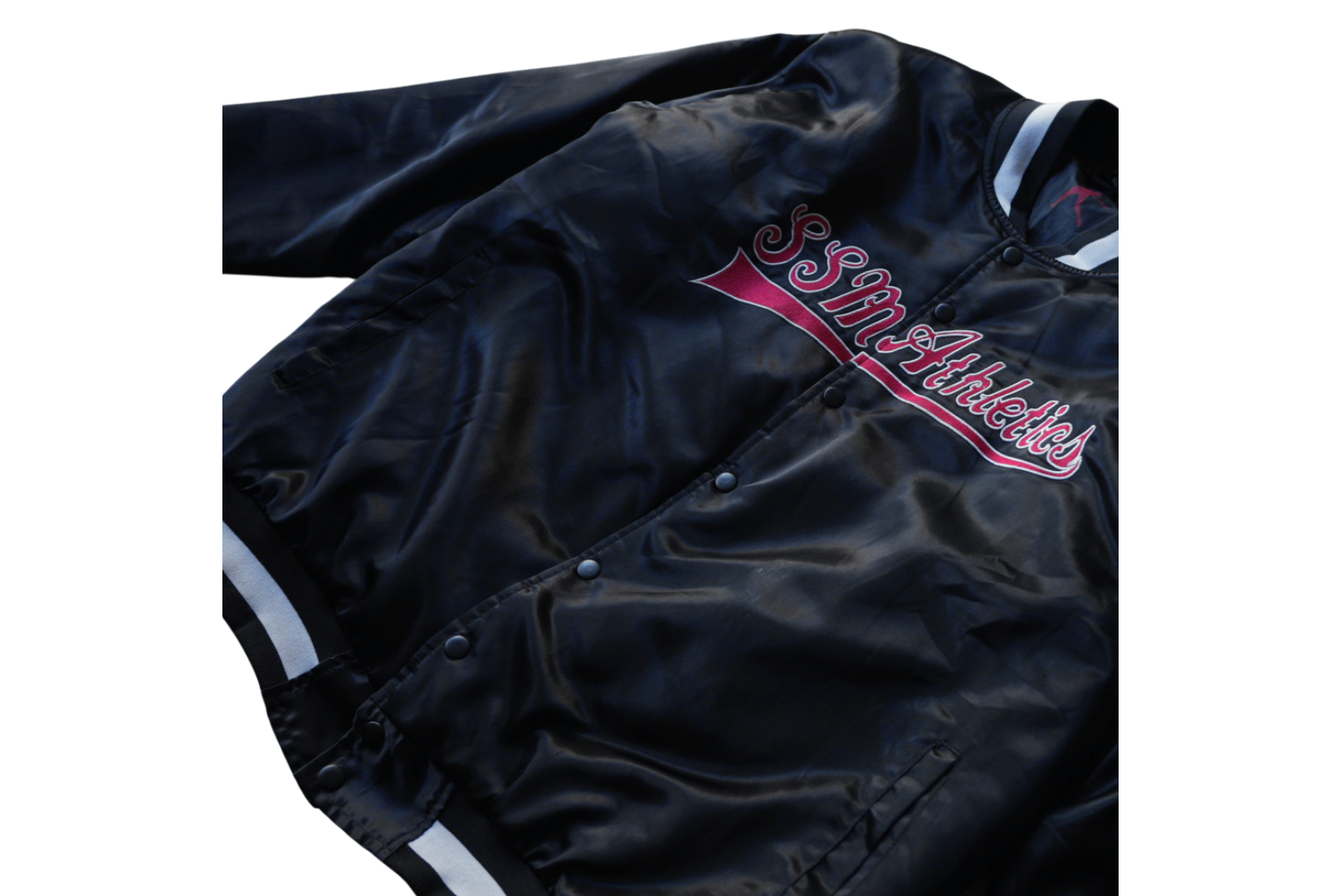 The Youth SSM Athletics Varsity Jacket is an essential for all casual outings. Crafted with 80% Cotton and 20% Polyester, the varsity collection satin jacket is durable and lightweight, offering lasting comfort for all your daily activities.